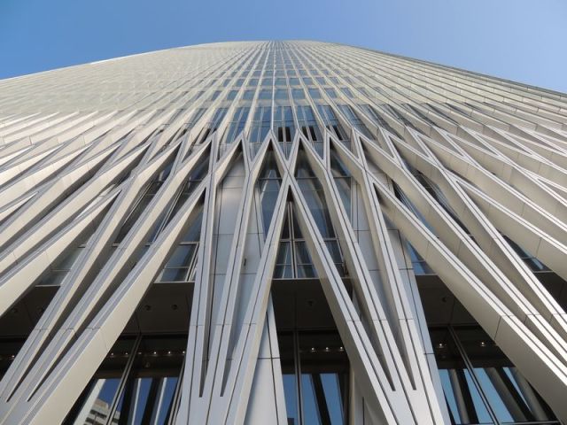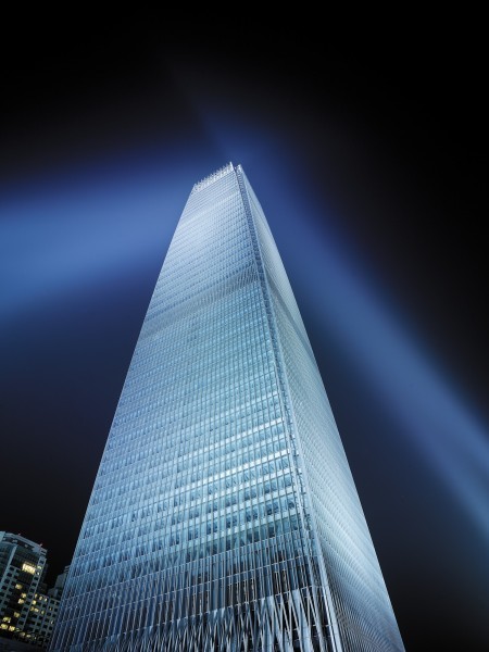 它并不打算隐瞒这种富饶。20毫米厚的钢化玻璃铺满了整栋楼330米的高度,通透的观感构成了一种全球通晓的语言——它是现代而包容万物的,仿佛任何人都可以随意地进出。事实上也确实如此,一群穿着校服的中学生经常跑到32层的中转大厅玩闹,一个戴着小红帽的外地旅游团把这儿当成景点浩浩荡荡地走过,杂乱的脚步声在大堂 里回响,也并没有人阻拦,这座摩天大楼似乎秉承了这类建筑20世纪80年代诞生时最初始的意象——一个经济自由主义的标志。