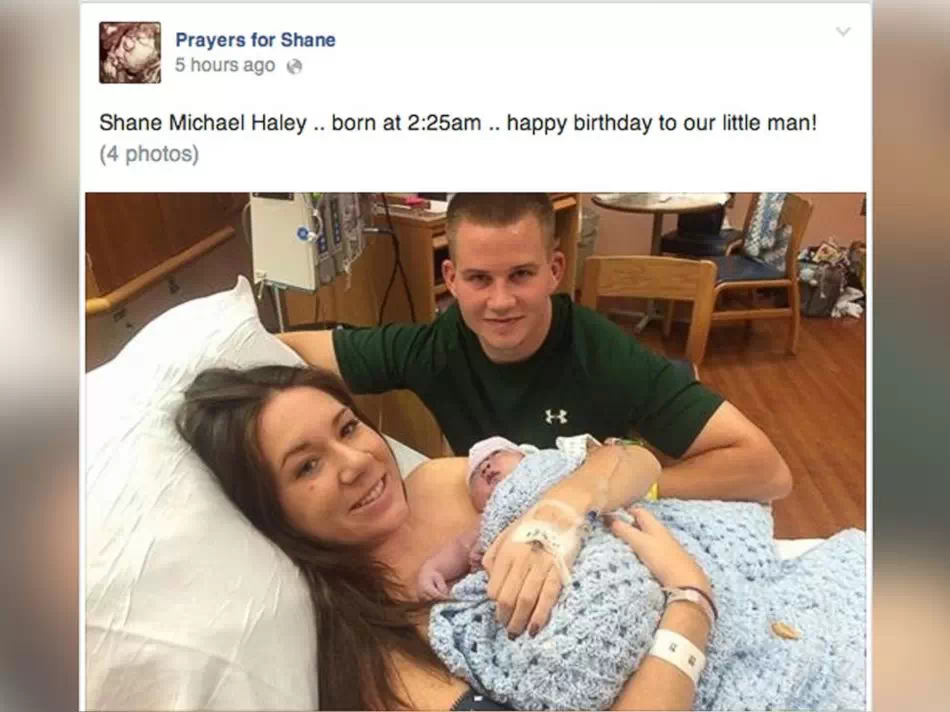 宾夕法尼亚州费城夫妇丹•哈利与珍娜•盖休的儿子肖恩还未出生即被诊断出患有脑畸形绝症,他于当地时间9日凌晨出生,但仅4个小时后即夭折在母亲怀中。