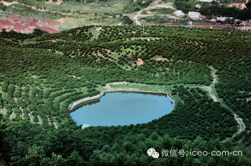 云南新平县褚橙庄园,中间的水塘是冰糖橙的灌溉水源