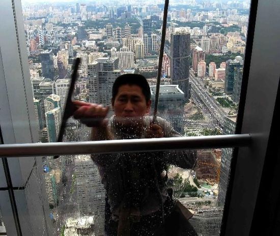 总有人怀着朝圣者的心态来到这座大楼,有的人在这里4层负重往返跑了25次,有的跑到80层上了趟厕所,还有一个人每天都来买一个只有这里才出售的羊角甜甜圈。几乎每个人都会自觉或者不自觉地希望自己的气质能够与这座楼的气质相匹配,有的时候,人们会看到一个叫张永奎的蜘蛛人吊在那里擦玻璃,他腰间的保险绳造价上千,每根都有自己独特的出厂编号,另外一些时候,则有可能看到一个叫姜霞的快递员,她在国贸收货时格外注意衣服的整洁,往那边运东西时,也从不使用编织袋。20多年前,国贸还被人们叫作大北窑。现如今,只有在附近的公交站牌前,抬头查询路线的人们才会意识到,这个略显土气的地名与眼前的这座摩天大楼有何关联。