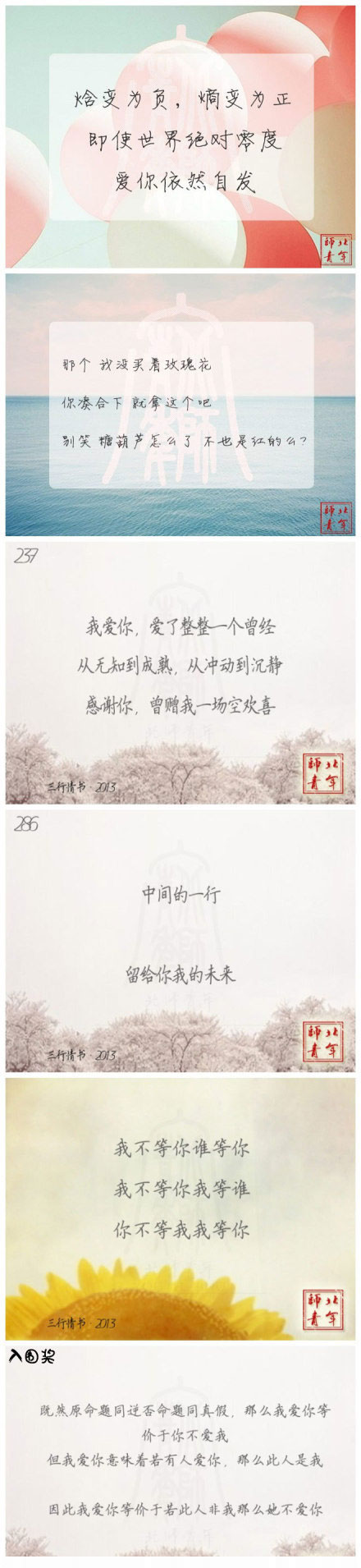 继武汉大学三行情书之后,北师大也进行了三行情书的征集。咱们大家一起看看吧。